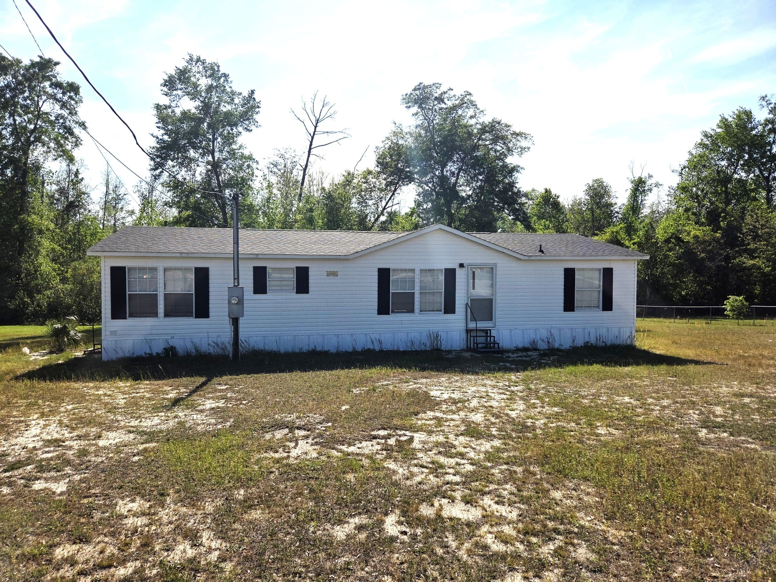 North Florida 38 acres with double wide, big metal barn, metal storage shed and large old tobacco barn.